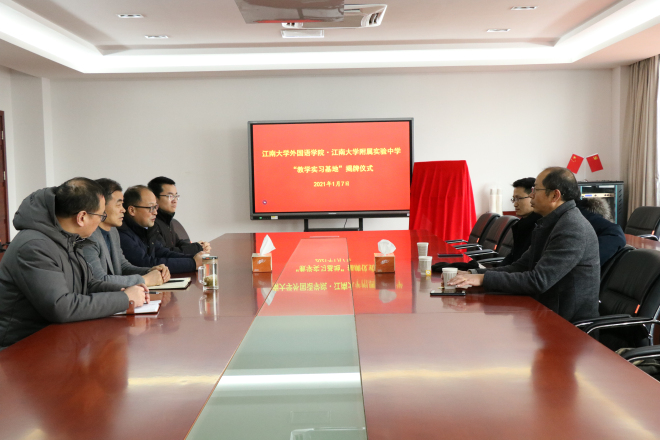 1月7日上午9:00,乐鱼leyu(中国)与江南大学附属实验中学共建“教学实习基地”揭牌仪式在江南大学附属实验中学六楼会议室举行。学院院长方文开、党委副书记刘伯贤、副院长朱义华、滨湖区教育局副局长吴仁昌、附属实验中学校长吴卫东、校党总支书记王星、副校长陈柏林参加了签约仪式。