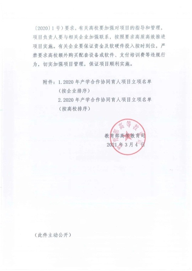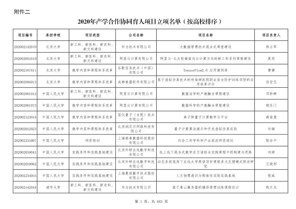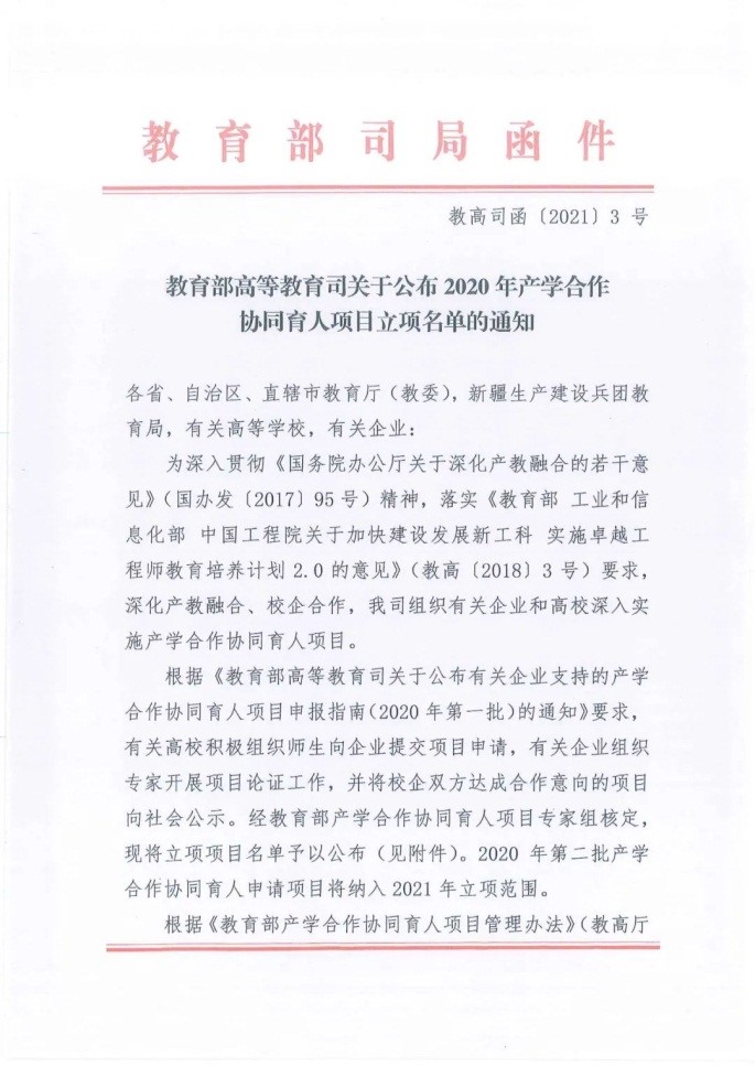 教育部2020年产学合作协同育人项目立项通知