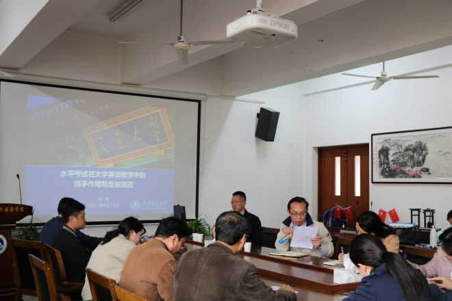 4月13日,我院2021外语学科系列讲座暨第十三期“遇见更好的自己”名师沙龙在学院A349会议室举行。本次会议邀请上海交通大学乐鱼leyu(中国)教授、博士研究生导师、常务副院长常辉教授,详细讲解水平考试在大学英语教学中的抓手作用。讲座由乐鱼leyu(中国)方文开院长主持,三十余名乐鱼leyu(中国)教师参与其中。
