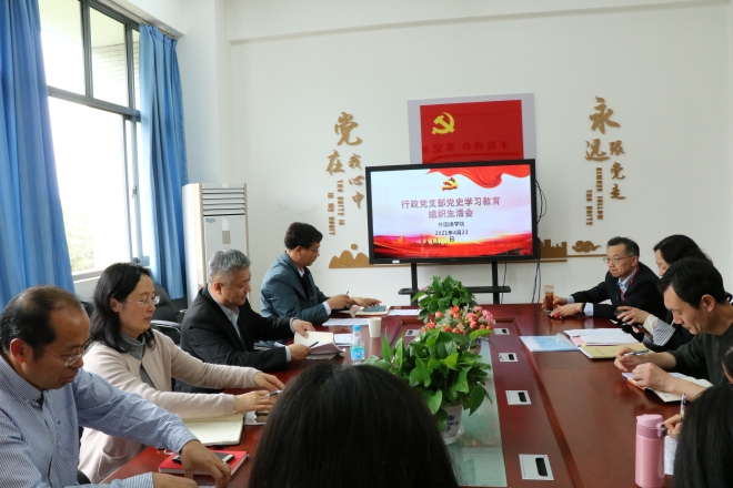 会议首先由学院党委史志洪书记给参会的同志领学了《习近平在党史学习教育动员大会上的讲话》相关精神。史书记从开展党史学习的教育意义、开展党史学习教育要突出的重点以及开展党史学习教育的相关要求进行了详细讲解。史书记希望本支部成员要切实按照学院党史学习实施方案,树立正确的学习观,不断创新学习方法,在学习中要与解决工作难题相结合学,做到学以致用,用能见效,用实际行动传承党的红色基因。同时要求每个党员要对党史学习的认识要做到位,要树立正确的党史观,要目标明确、行动明确。要防止学习和工作两张皮,要以学习党史来推动工作,把学党史和大外教学、师资队伍建设等结合起来,开启学院发展的新局面。