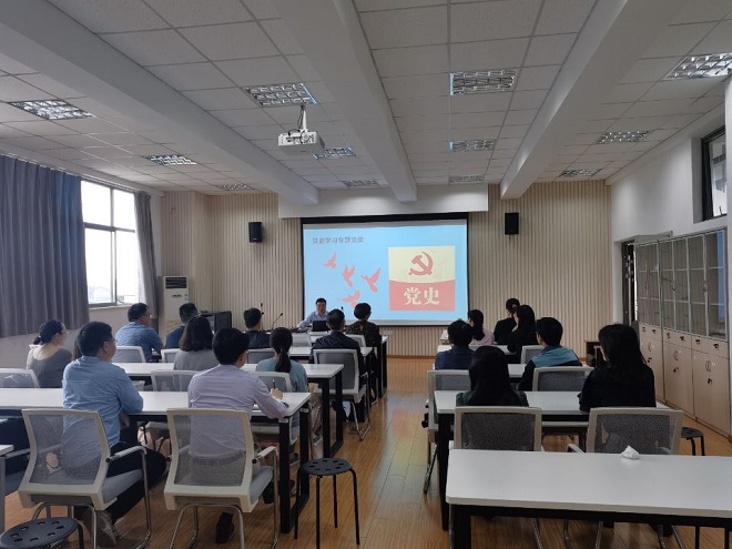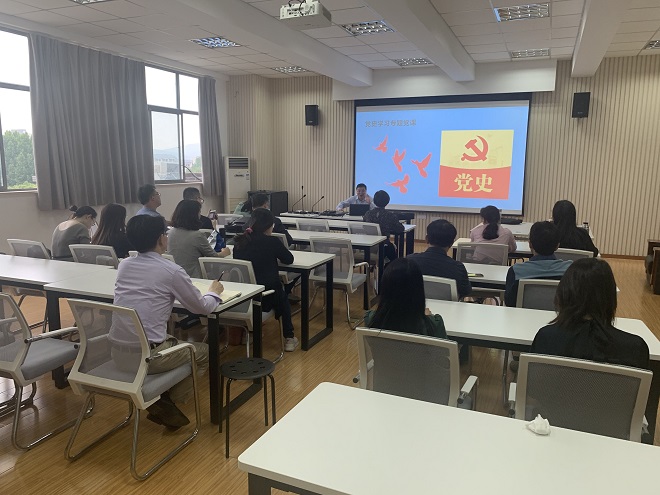 5月19日下午,乐鱼leyu(中国)英语系党支部书记彭方针副教授为英语系全体党员上了一堂严肃的以党的历次代表大会为主题词的党史微课。