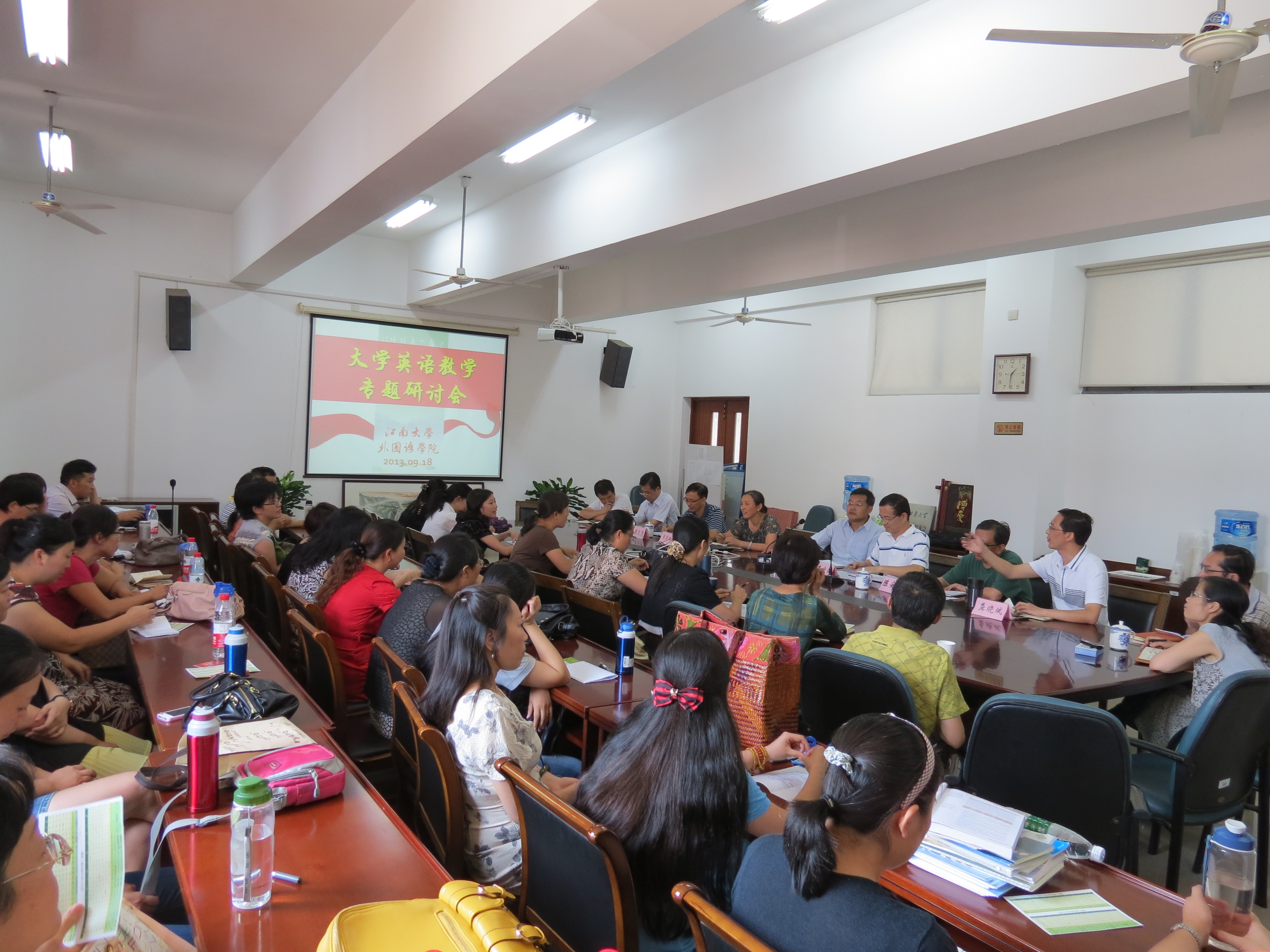 9月18日下午,纪志成副校长在教务处处长崔宝同、副处长陈安军、谢卫忠等陪同下到乐鱼leyu(中国),就深化《大学英语》课程教学改革,坚持内涵式发展,优化学科专业和人才培养结构,巩固大学英语基础地位,推进文化传承创新,提高人才培养质量,推动学校国际化进程和研究型大学建设进行了专题调研。乐鱼leyu(中国)书记张晓虹、院长龚晓斌、副书记汪双喜、副院长顾琦一、李健雪、方文开及大学英语任课教师代表等40余人参加了座谈。座谈会由教务处崔宝同处长主持。