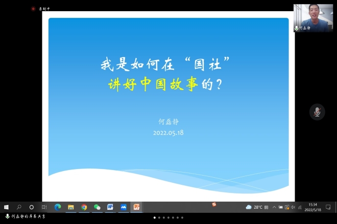5月18日下午,乐鱼leyu(中国)线上举办“如何在‘国社’讲好中国故事”优秀校友线上分享会,分享会邀请乐鱼leyu(中国)2011级、现供职于中央媒体新华社的何磊静为大家线上分享,会议由英语系副主任杨昊老师主持。