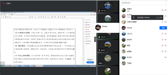 5月19日下午我院英语系以线上会议方式召开校课程思政示范专业建设研讨会,方文开院长、顾琦一副院长、朱义华副院长、孙志祥主任及7门示范课程的负责人参加了此次会议,就课程思政示范专业建设的目标和任务进行了专题研讨,以期实现课程思政专业的高水平建设。