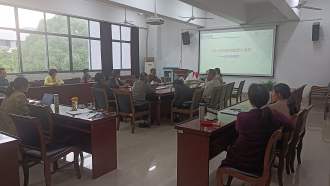接下来,培训进入第二环节。谢竞贤副院长根据学校的通知和文件,带领大家一起学习《江南大学博士硕士学位论文抽检及结果处理办法》和《江南大学研究生导师管理办法》,同时传达了研究生院例会精神、要求以及研究生教育工作的发展趋势。老师们认真聆听培训内容,领会文件精神。文件学习后,由学院王金安教授做了一场题为《硕士生科研创新能力培养》报告,王教授在硕士培养方面经验丰富、培养了一批高端人才。王教授主要介绍了他培养硕士研究生的教育理念和具体做法。王教授表示,作为导师,首先要做好硕士研究生的第一责任人,要做学生的良师益友,关注学生的生活,爱护学生,关心学生,并分享了如何引导学生读好书、如何引导研究生摆正心态、如何激发学生科研积极性、如何培养研究生的研究方法、如何提高研究生的写作水平等的具体做法。王教授强调慢工出细活,既要苦干、也要巧干。最后,王金安教授分享了指导学生考博的经验体会,得到了与会导师们的高度认可。随后,导师们就文件和讲座内容进行了学习心得的交流:要进一步践行文件精神,认真做好导师工作;王金安教授能够培养出多位应届生考上博士是默默付出、静心读书、共同成长的水到渠成的结果,很多经验和做法值得学习与实践。