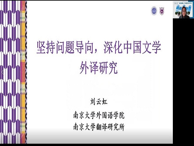 随后,刘云虹教授就如何深化中国文学外译研究给出了自己的建议。首先要以上述问题为导向,构建两种比较视野。其次,译者们必须要坚持动态发展观,要对中国文学外译有方向性的把握,深刻认识翻译本质、遵循翻译活动基本规律,秉持中国文学外译的审美价值取向。最后,刘教授对讲座进行了总结,指出新的时代背景下,“中译外”的重要性越来越凸显,译学界应当重新审视与思考翻译根本性问题,坚持方向把握与价值引领,进一步深化中国文学外译研究。