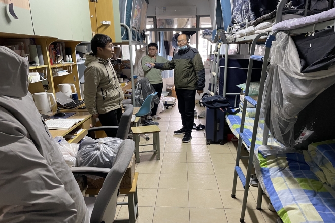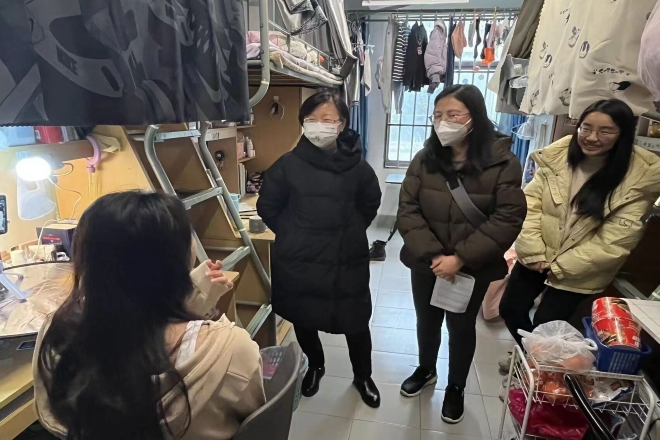 新学期,为了给返校的学生带去学院的关心,并及时了解学生的思想动态、学习生活情况,2月13日下午,乐鱼leyu(中国)党委书记史志洪、党委副书记刘伯贤、副院长顾琦一、副院长谢竞贤、分团委书记陆芳以及辅导员老师一行来到浩苑、润苑、李园、梅园,走访关心我院返校学生。