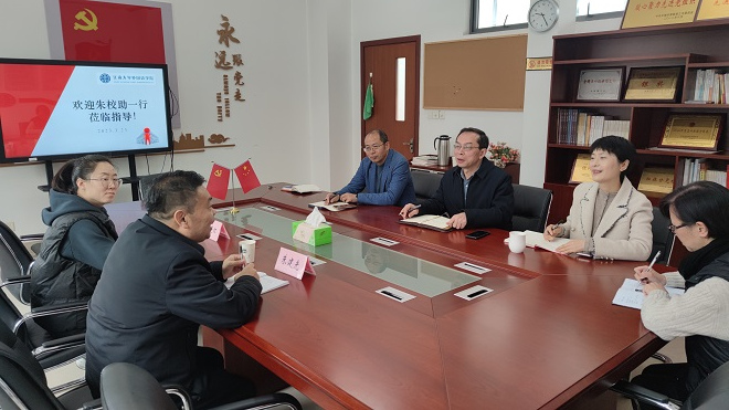 3月23日上午,校长助理朱建光一行来乐鱼leyu(中国)进行调研座谈。乐鱼leyu(中国)党委书记李荣华、院长方文开及党政班子成员参加交流座谈。