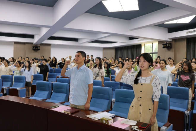 军训动员大会在庄严的国歌声中开始。首先,学院党委副书记刘伯贤介绍了中国近代历史的发展以及当前的形势热点,刘书记说:军训是大学生涯中的一门必修课程,也是学校教育教学工作的重要组成部分,更是大学生学习军队优良传统、培养艰苦奋斗精神和集体主义观念的大课堂。同学们通过此次军训磨炼自己的意志,将为以后的学习及生活奠定良好的身体素质及意志基础。同时刘书记代表学院对参加军训的学生们提出了三点期望:一提高意识,居安思危;二严于律己,服从指挥;三顽强拼搏、收获成功。在介绍军训相关要求环节,带训辅导员苗文建讲述军训细则以及相关要求,并希望同学们认真对待此次军训,严格要求自己。最后,21级军训优秀学员魏千钧分享了自己的军训感悟,为同学们提供了军训经验,并带领全体参加军训同学庄严宣誓。