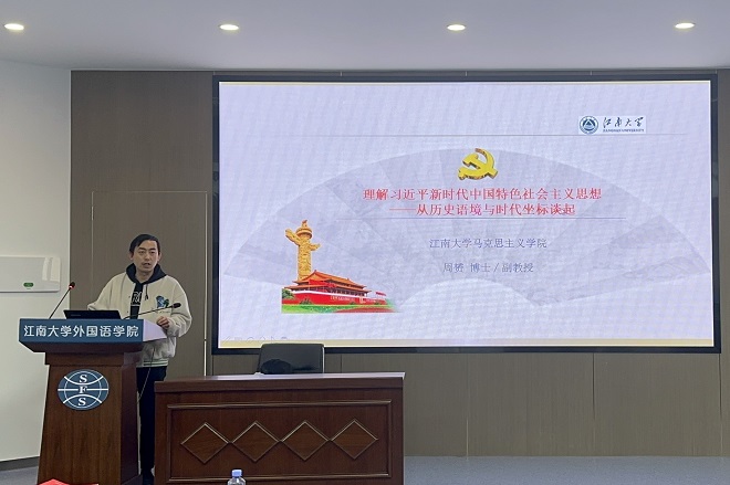 周赟博士与团学骨干就“如何理解习近平新时代中国特色社会主义思想”这一主题进行交流研讨。周赟博士从历史语境与时代坐标谈起,围绕如何回答“中国之问、世界之问、人民之问、时代之问”这一关键性问题,从三大维度、三大陷阱出发,结合中国经验和中国道路展开交流研讨。