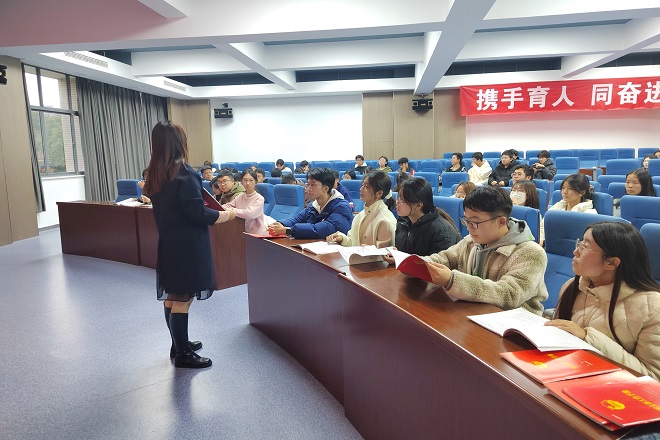 为进一步体现团员和青年的特点、提升理论武装的实效性,分团委书记顾海星作了题为“学习习近平文化思想,担当新时代文化使命”主题团日示范课,她结合全国宣传思想文化工作会议精神,鼓励同学们做中国优秀传统文化的传承者和中外文明的交流者。顾海星结合年级、专业特点,对27个团支部进行了分类指导,明确了团支部工作的重要性,指导团学骨干如何策划、开展团日活动、组织团课学习和团支部手册等台账的规范记录工作。