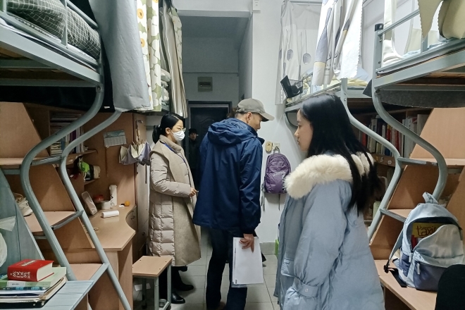 学院辅导员带领学生会同学对学院本科生宿舍进行全面检查,在检查过程中,从用电安全到内务整理,逐一提醒并做好情况记录,检查结果在各年级进行公布。临近期末,辅导员老师提醒大家宿舍及时开窗通风,学习上做好复习迎考。