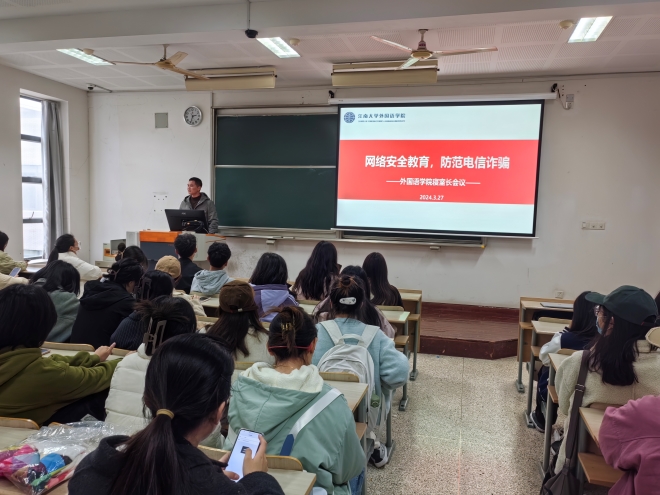 为进一步做好网络安全教育工作,加强校园反诈宣传阵地建设,切实提升广大师生识诈、防诈、反诈意识和能力,3月27日14:00,乐鱼leyu(中国)在二教开展“网络安全教育,防范电信诈骗”专题讲座。本次讲座邀请雪浪派出所董蕾警官进行宣讲,学院本科生、研究生全体宿舍长参加,由辅导员苗文建老师主持。