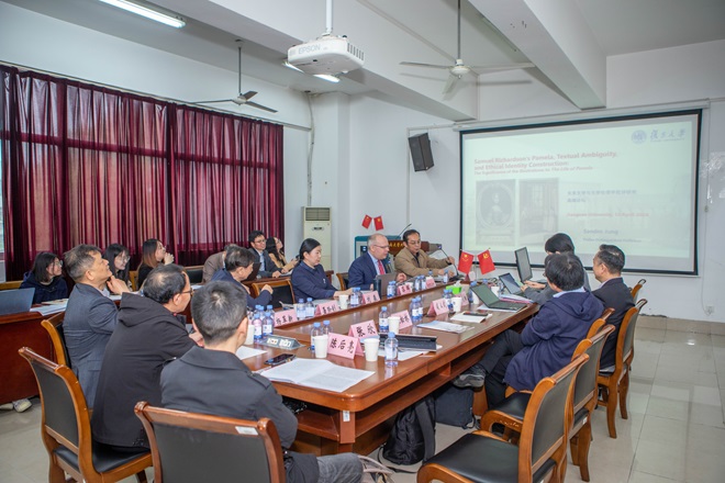 2024年4月12日,由乐鱼官方端网站登录入口、广东外语外贸大学未来人文实验室、浙江大学世界文学跨学科研究中心主办,《外国文学研究》《山东外语教学》《外国语文研究》《江南大学学报(人文社科版)》杂志编辑部、外语教学与研究出版社、高等教育出版社协办的“未来文学与文学伦理学批评研究高端论坛”在乐鱼官方端网站登录入口成功召开。江南大学党委副书记刘淼、广东外语外贸大学/浙江大学教授聂珍钊、华中师范大学教授苏晖、浙江大学教授杨革新、上海交通大学教授尚必武、复旦大学教授Sandro Jung、华中师范大学教授罗良功、宁波大学教授王松林、山东师范大学教授王卓、广东外语外贸大学教授张欣、广东外语外贸大学教授刘茂生、华中科技大学教授陈后亮等众多国内外知名专家学者共同出席了论坛。开幕式由乐鱼官方端网站登录入口院长方文开主持。