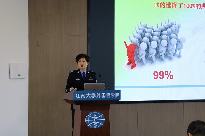 活动伊始,陈丽丽警官结合一个个鲜活的事例,介绍了毒品来源、种类和毒品对身心、家庭、社会的危害,特别强调在海外游学时切不可因一时猎奇心理而沾染毒品。她呼吁同学们积极参与到禁毒行动中来,争做拒毒防毒宣传员,勇于为维护国家主权、安全和发展利益挺膺担当。