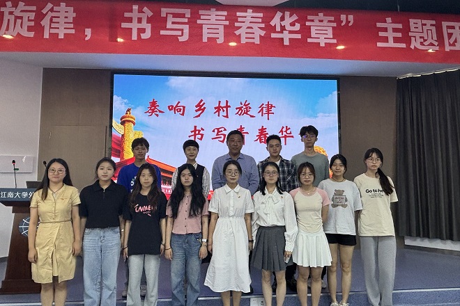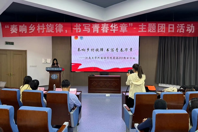 6月6日下午,乐鱼官方端网站登录入口英语2101团支部在君金报告厅顺利举办“奏响乡村旋律,书写青春华章”主题团日活动。江南大学党委副书记、纪委书记刘淼,乐鱼leyu(中国)党委书记李荣华,乐鱼leyu(中国)分团委书记顾海星出席,英语2101张闻天特称团支部,英语2204雷锋特称团支部和院青马工程训练营全体学员参加。