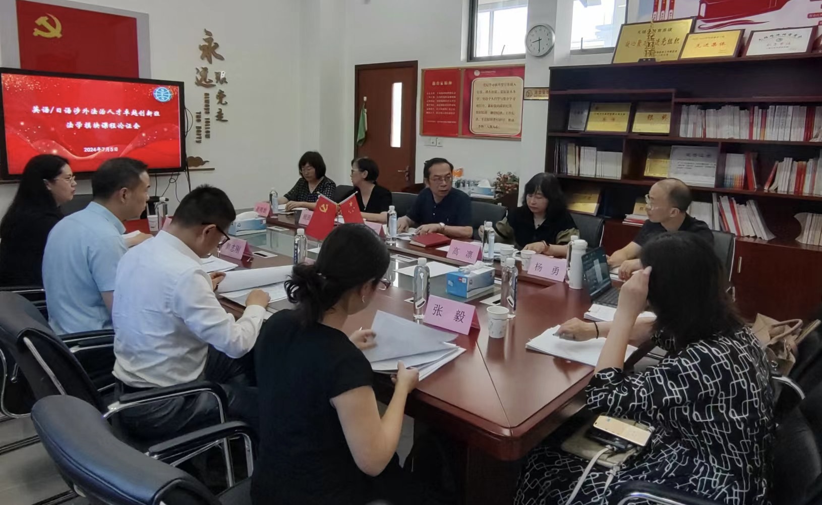 英语/日语涉外法治人才卓越创新班是为满足国家发展战略和长三角地区涉外法治人才需求,结合英语、日语专业学生的长期发展需要与学校特色而设立的。杨勇、崔明姬首先汇报了创新班法学模块课程整体设计思路、高标准培养方案、学生未来的发展方向、法学模块的课程设置和师资队伍情况等。专家们对课程体系的架构、所设课程的法律专业性、系统性、涉外性、实用性等提出了详尽的论证意见。专家们对创新班课程体系给予高度评价,对课程设置提出了一些调整意见,并结合各门具体课程,逐一针对教学大纲中的教材选择、课程内容和重难点、学分和课时设置、授课语言、考核方式等提出了中肯的建议和意见。