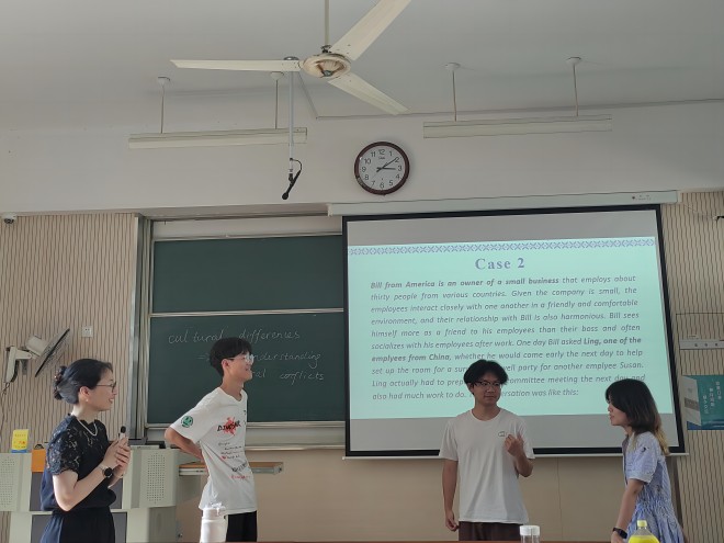 接到课程任务后,乐鱼leyu(中国)派出了以跨文化交际、口译和思辨表达见长的七位教师,精心设计了三个方向的课程,并从应用和学术两个角度,为所有参课学生布置了小组讨论作业。在5天的训练营期间,老师们通过深入浅出的知识讲解,丰富有趣的案例介绍,生动活泼的课堂活动,将语言学习和思辨力提升融入跨文化交流,并带领学生们进行初步的学术探索和研究。在结营评比中,共有16个学术组,28个应用组进行了交流,他们用全英文的案例表演和分析汇报等方式,全面展示了此次训练营的成果。