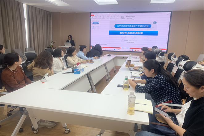 为了持续提升我校大学英语教学质量,大学英语一部、二部于10月9日举办了“大学英语教学质量提升:新形势、新要求、新方案”专题研讨会。参加此次研讨会的有乐鱼leyu(中国)顾琦一副院长、谢竞贤副院长、大学英语一部、二部的正副主任以及各课程组组长和骨干教师。
