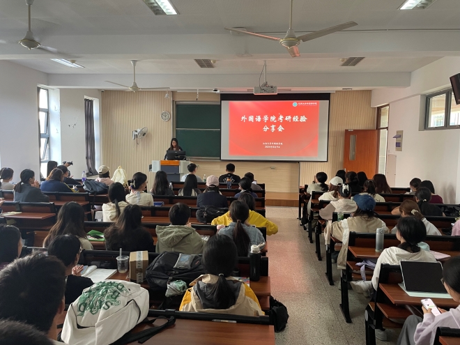 刘欣民学长在进行了简洁的自我介绍后,着重从心态方面讲解备考秘籍。他同样提到,备考时需要专注自身学习,关注自身的进步而非网络上乐鱼官方端网站登录入口考研复习的炒作。他指出英语专业在学习时的特点是积少成多,稳定的心态更能帮助我们完成质变。此外,他细致介绍了如何确定考研目标,并推荐了复习资料和工具,为同学们考入理想的学校提供指引。