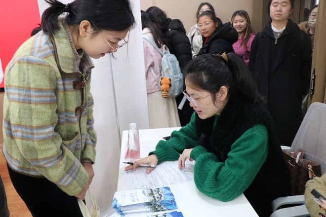 本次招聘会吸引江苏国泰华盛、新东方教育、弘元绿能、无锡金丽洁等十余家用人单位参会,涵盖教育培训、贸易、快销等诸多行业。下午14点,在君金报告厅举行企业宣讲会,参会企业依次上台,对企业情况、岗位招聘、福利待遇等进行介绍。宣讲会结束后,在学院锦洲报告厅举行招聘会,学院2025届毕业生、2026届实习生及低年级同学也来到会场学习交流。求职学生手持个人简历,与意向企业沟通交流,就岗位薪资待遇、晋升渠道、企业文化等进行详细地了解,并认真听招聘企业的意见。