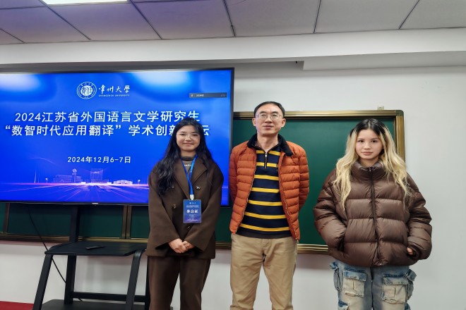 2024年12月6日至7日,江苏省外国语言文学研究生“数智时代应用翻译”学术创新论坛在常州大学科教城校区成功举行。此次论坛由江苏省文学类研究生教育指导委员会主办,常州大学研究生院和乐鱼leyu(中国)承办。来自全省各高校的专家学者与翻译学科的研究生们齐聚一堂,共同探讨数字化、智能化时代背景下,应用翻译的新理论、新方法、新技术及应用实践。我院23级2名研究生代表由陈伟教授带队参加了此次论坛。