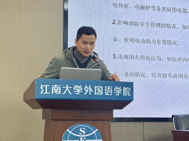 首先,苗文建结合《江南大学课程考核与管理实施细则》、《江南大学学生违纪处分规定》,向大家介绍了诚信考试的基本要求和重要性,强调了考试作弊的严重后果,通过列近期学生发生的考试作弊案例,引导学生们从中吸取教训,认真复习备考,树立诚信考试观念。冬季气温降低,学生宿舍用电安全问题进一步凸显。会议上,苗文建结合学校的《乐鱼官方端网站登录入口加强冬季防火、用电安全管理的通知》、《乐鱼官方端网站登录入口开展学生宿舍冬季用电安全专项检查的通知》,强调了宿舍严禁使用违章电器,严禁违规用火用电等行为。