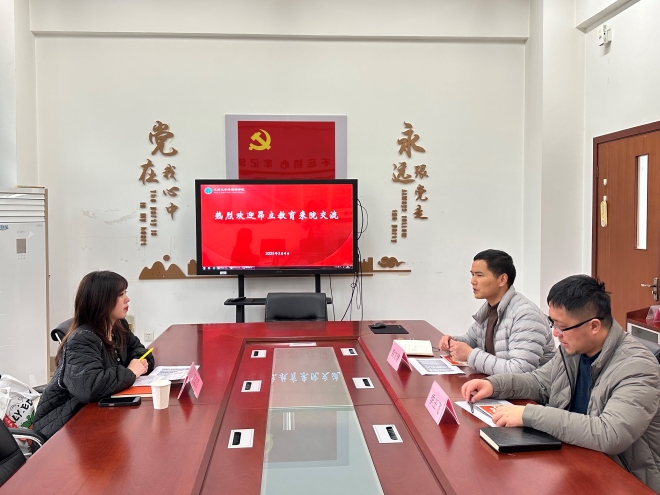 3月4日下午,上海昂立教育校招经理杨乐仪来访乐鱼leyu(中国),洽谈校园招聘、校企合作相关事宜。乐鱼leyu(中国)党委副书记、副院长季王飞,辅导员苗文建参加座谈。
