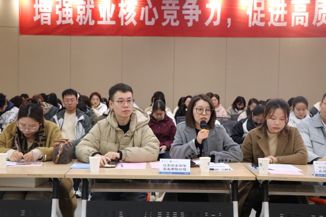 在企业座谈交流环节,各企业代表围绕“提升大学生求职能力”纷纷发言。江苏省中江海外进出口有限公司招聘经理范文倩表示,大学生在校期间要立足专业学习,打造“外语+”的能力,提升个人语言表达能力和解决问题的能力;无锡美迪尔进出口有限公司总经理王涛分享了自身学习经历和创业经历,为准备就业的同学提供了建议;中报国际网络无锡有限公司副总编辑颜玮珏介绍了公司的主营业务,鼓励大家在校期间参与实习实践,希望后期可以和乐鱼leyu(中国)加深交流合作。在互动环节,同学们积极提问,表达了自己的困惑并获得了企业代表的解答。许多同学表示,此次活动提供了一个与企业深入交流和互动的机会,不仅让他们了解行业的发展趋势和未来发展方向,更是对自己的职业规划和就业选择提供了指引。