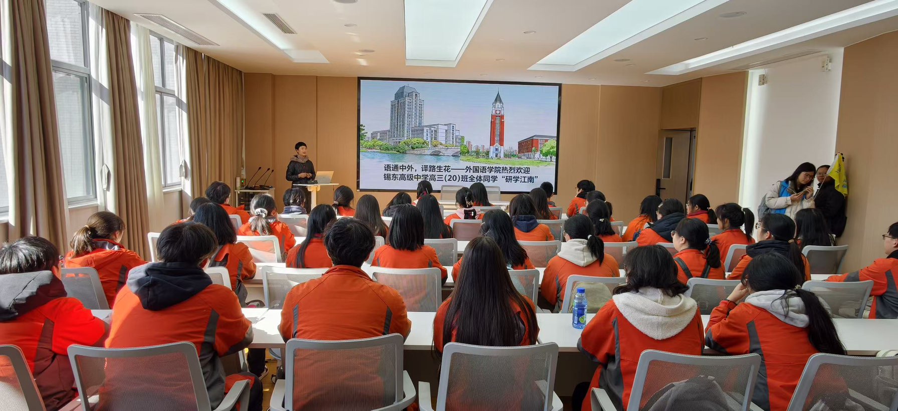 为搭建校际交流桥梁,助力高三学子明晰专业方向,11月18日上午,无锡市锡东高级中学高三(20)班50余名师生走进乐鱼官方端网站登录入口,开启研学江南之旅。活动由英语系朱芫老师主持。