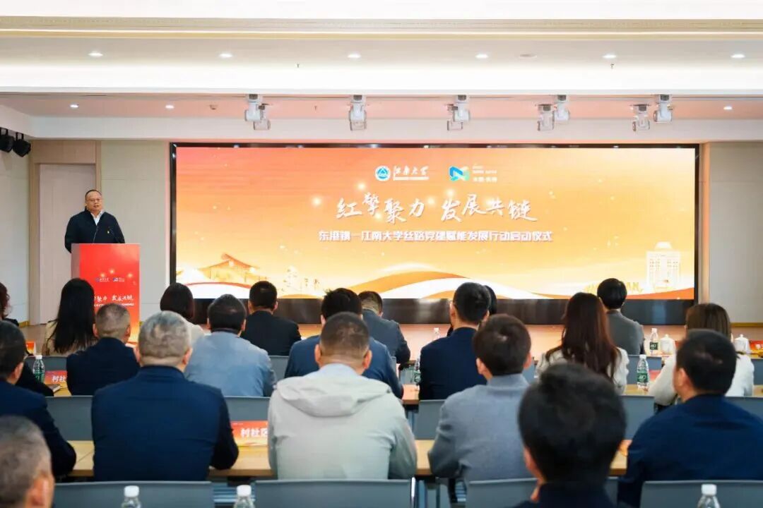 2025年11月14日上午,“红擎聚力 发展共链——东港镇—江南大学丝路党建赋能发展行动”启动仪式在东港镇党群服务中心二楼报告厅成功举办。乐鱼官方端网站登录入口作为核心参与单位,与商学院共同携手东港镇,在锡山区委组织部的见证下,开启了以党建为引领、以丝路为特色的校地合作新模式。
