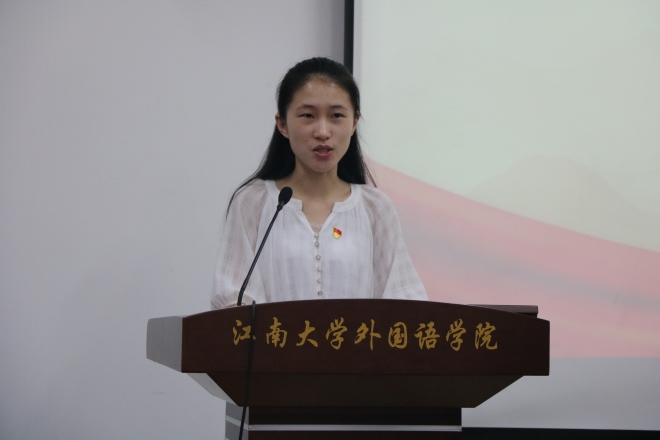 英语2103班高子涵同学代表全体新党员进行发言,她从“努力加强党性修养”“保持党员先进性”“发挥先锋模范作用”三个方面向党组织做出保证,号召全体新党员踔厉奋发、勇毅前行,用实际行动践行入党誓言,早日成为一名优秀的共产党员。