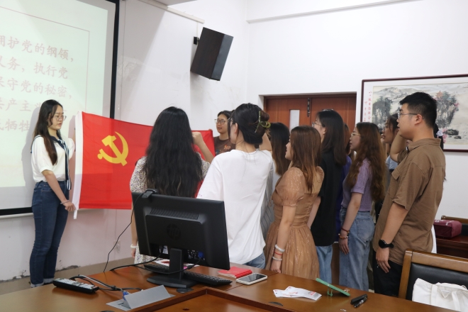 时值“七一”来临之际,为教育党员始终保持党的先进性,激发新党员的责任感和使命感,不忘初心,乐鱼leyu(中国)在6月19日14:30于外院楼A349举行新党员“七一”入党宣誓仪式。乐鱼leyu(中国)党委副书记刘伯贤、关工委常务副主任鲍国庆、委员吴艳敏、分团委书记陆芳出席宣誓仪式。本次活动共20名新发展党员参加,分团委书记陆芳主持会议。