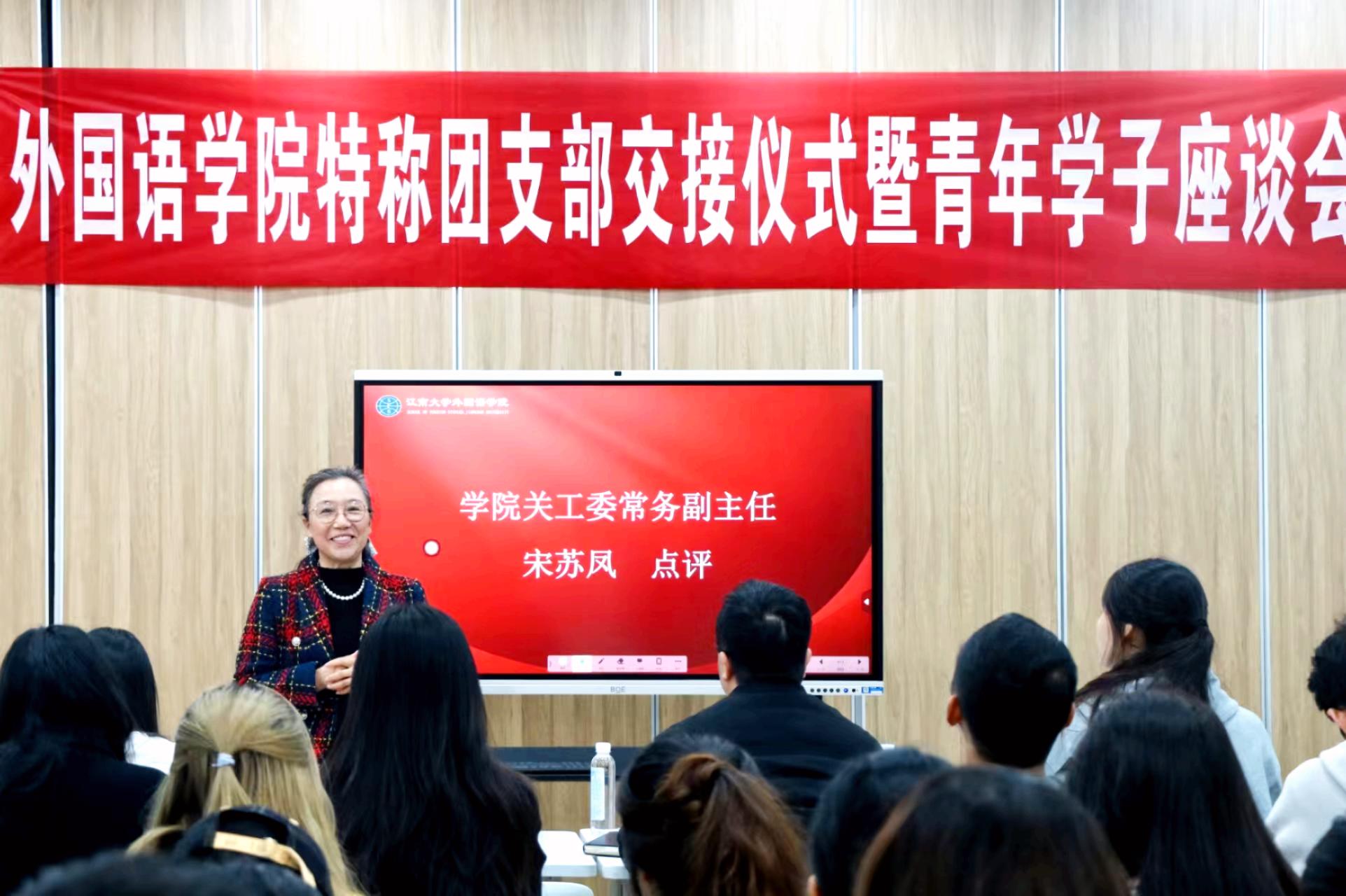 季王飞总结发言,他回顾了张闻天同志的革命精神,强调新时代青年应传承并发扬这一精神,以张闻天精神为思想引领旗帜,推动学院团支部建设进一步发展。季书记表示,新时代的外院学子不仅要提升综合素质,发挥外语优势,让中国与世界同行,更应将个人理想与国家命运紧密相连,勇挑时代重担,开拓进取,为实现中华民族伟大复兴贡献青春智慧与力量。